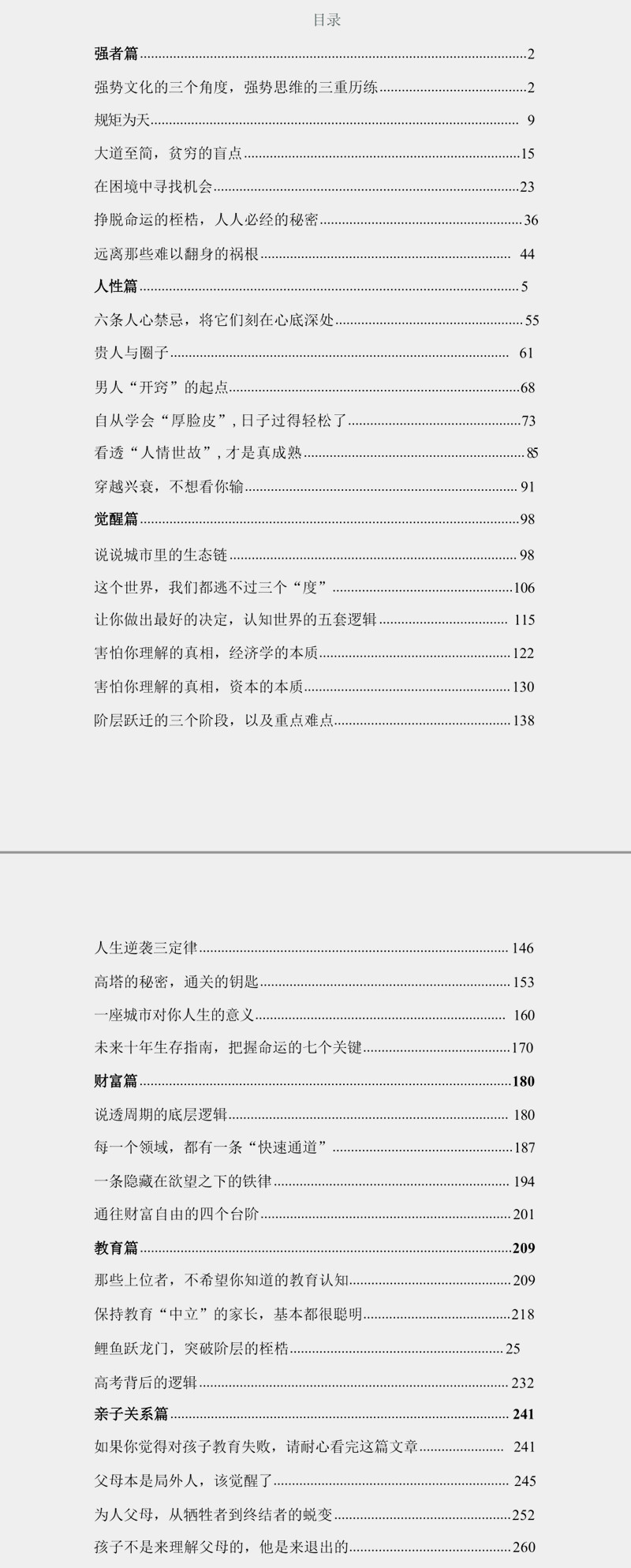 古话说:“天下熙熙皆为利来,天下攘攘皆为利往”,但这句古话是错误的,尽管许多人也认为,人必须趋利避害,但真相却是:人性不是追求利益,而是追求快乐。想想看,你不喜欢做的那些事情,有多少是明显对你有益的事情?比如读那些思想深厚的书,学习某项专业技能,坚持每天锻炼,早睡早起,等等,这些事情显然对你有好处,但你却不愿意这样做,为什么?因为做这些事情没那么开心,甚至痛苦。另外,人性也不是逃避伤害,而是逃避痛苦,因为在现实生活中,从长远来看,很多对你有害的事情,你不仅不逃避,而且还乐此不疲,比如熬夜、暴饮暴食、沉迷游戏、烟酒,等等。你当然知道这些东西对自己有害,但你仍然乐在其中。所以,人性不是在逃避有害的东西,而是在逃避那些让自己感到痛苦的东西。本册电子书存放在百度网盘,《开悟之路》.PDF(共有268页)。