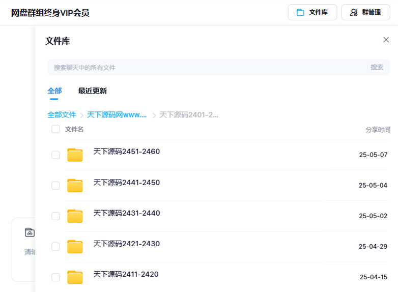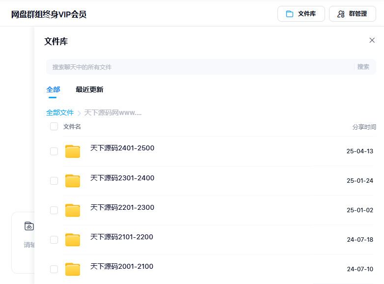 二、网盘群组终身VIP会员,所有源码来自天下源码网,全网源码的专业分享站点,涵盖不同领域与各个行业,提供不同类型的源码程序,包括PC整站源码、主题模板、网站插件、APP源码、小程序源码等,天下源码一网打尽,相信总有适合你的。网盘群组终身VIP会员与网站终身VIP会员比较,二者源码是完全相同的,唯一不同之处在于,前者转存和下载没有任何限制,后者每日则有下载次数限制,因此前者开通价格略高一些。