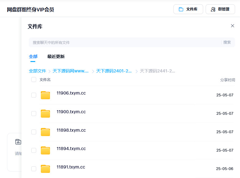 一、网盘群组终身VIP会员,网盘群组内的源码,均为压缩文件形式,依据编号有序存放(截图所示),可以在线转存或下载。若要查看源码的图文详情,敬请访问天下源码网www.txym.cc,源码目录名称编号,就是网站页面编号,比如目录名称是11808.txym.cc,则网站页面地址是http://www.txym.cc/11808.html