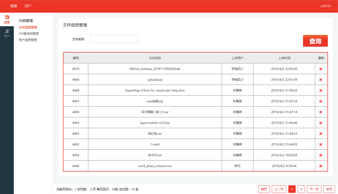 这是一套不错的网盘源码,模仿百度网盘风格,拥有网盘系统的核心功能,前台注册和后台管理,上传下载和文件分享,分享链接由系统自动生成,而且是唯一的,网盘自带会员功能,普通会员空间100MB,VIP会员空间10G。个人可以用来搭建一个私有网盘,对外提供资源的上传与下载,创业团队或小微企业,可以用来搭建一个工作网盘,实现内部文件的分享与管理。