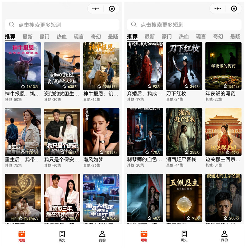 这是一套免费短剧追剧解决方案,可以完全满足你的免费短剧追剧需求,全网海量短剧免费观看,竖屏剧和横屏剧都有,男频剧和女频剧都有,各种短剧题材应有尽有,比如仙侠、玄幻、古装、武侠、逆袭,等等,不同短剧类型全部都有,比如真人短剧、AI真人、AI短剧、AI漫剧、传统漫剧,等等,让你真正实现免费观看短剧自由。由于不同短剧平台规则各不相同,短剧资源可以互为补充,也许可以解决平台短剧的下架问题。本套免费短剧追剧解决方案,共由三个部分组合而成,安卓APP+微信小程序+网盘资源,相关文件存放在百度网盘,大小685M,一个压缩文件,解压以后,大小809M,共有14个文件,压缩文件解压无需密码。