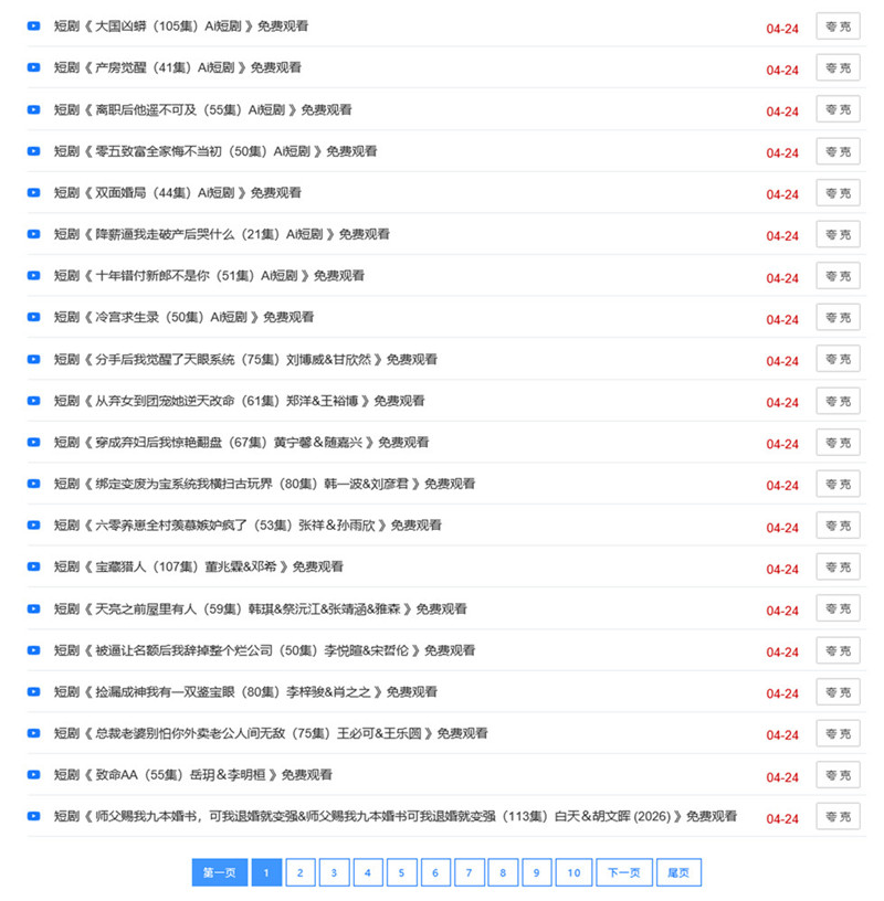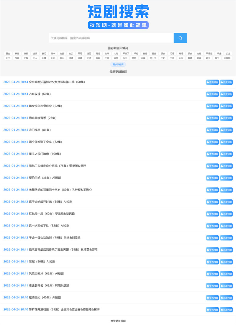 三、免费短剧网盘资源:我们通过资源导航站点和站点友情链接,按图索骥并且顺藤摸瓜,终于成功找到几个免费短剧资源站点,网站提供免费短剧全集资源,支持全站短剧在线搜索,每日持续更新或多日集中更新,单次更新短剧数十部或数百部。短剧资源存放在百度网盘或夸克网盘,可以转存到网盘里在线播放,或者下载到本地设备随时观看,宝贝截图21-22。